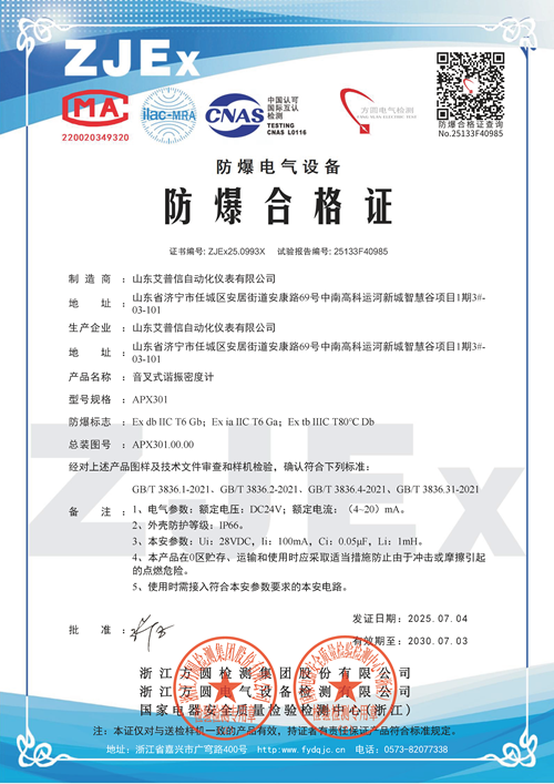 選用產(chǎn)品APX301音叉密度計(jì)